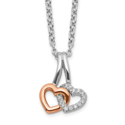 White Ice Sterling Silver Rhodium-plated Rose-tone 18 Inch Diamond Hearts Necklace with 2 Inch Extender